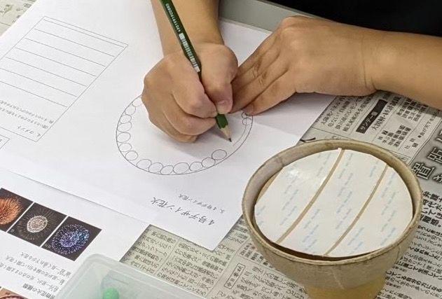花火の歴史や仕組みを職人さんからお聞きして、自分だけのオリジナル花火デザインを制作します。実際の花火玉をイメージした「星ならべ」では、打ち上げ構成を体感。