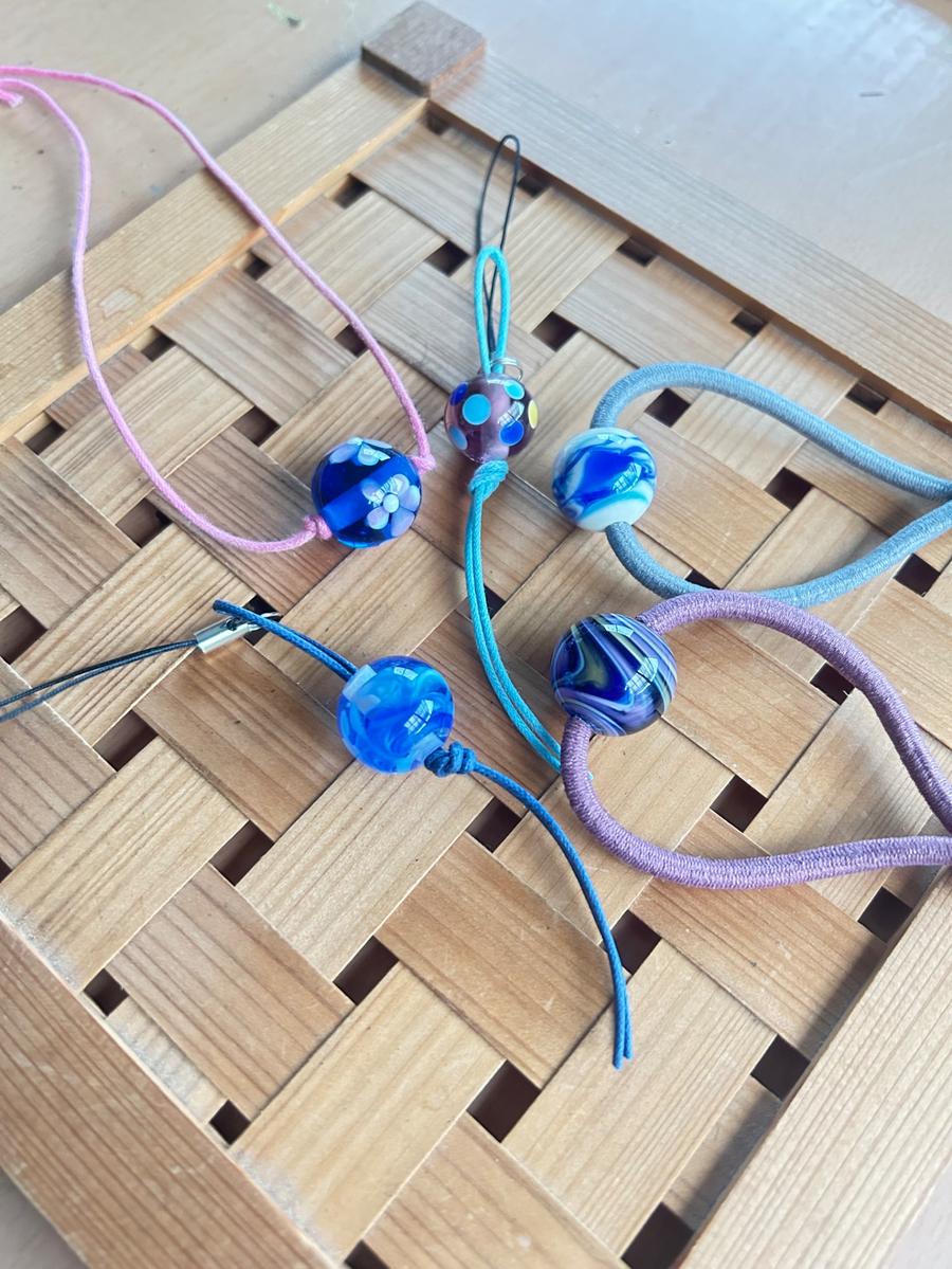 家族5人でお伺いしましたが、一人一人とても丁寧に教えていただきました。手が少し思うように握れない母も、自分で作った花柄のとんぼ玉をとても嬉しそうに眺めていました。娘たちも、それぞれ気に入ったものが作れて大満足でした。今度はまた違う柄にも挑戦したいと思います。本当にありがとうございました。